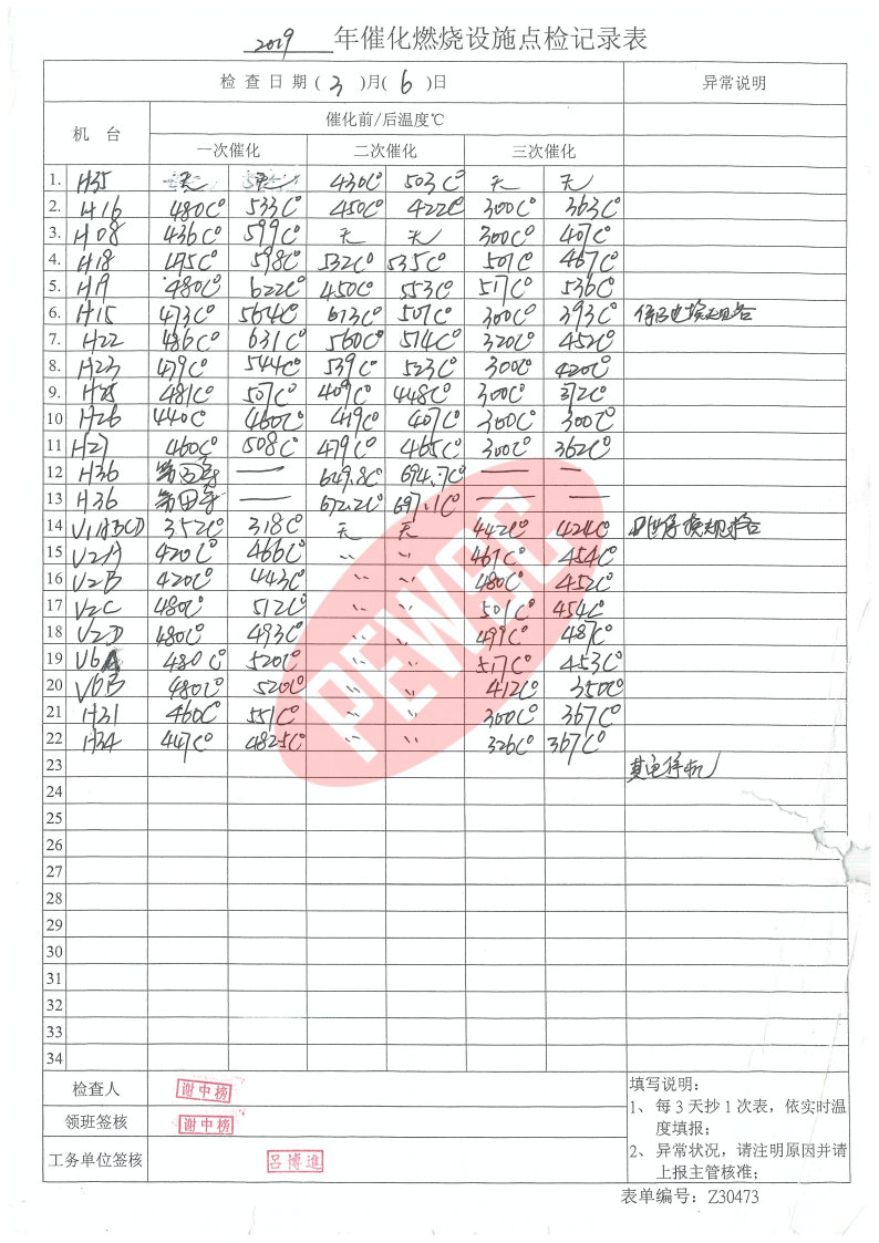 环境-运行台账-催化燃烧