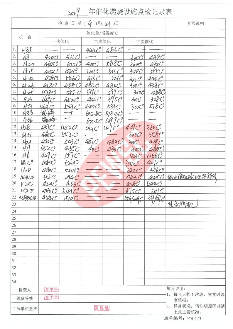 环境-运行台账-催化燃烧