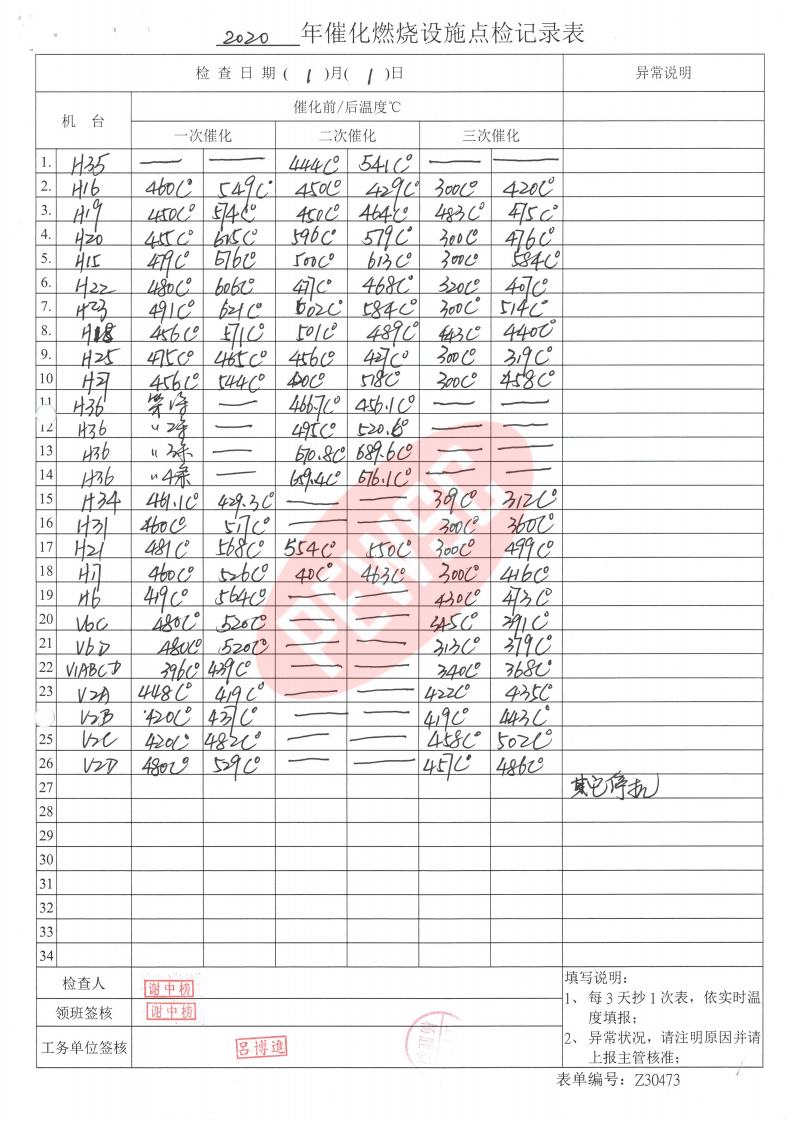 环境-运行台账-催化燃烧