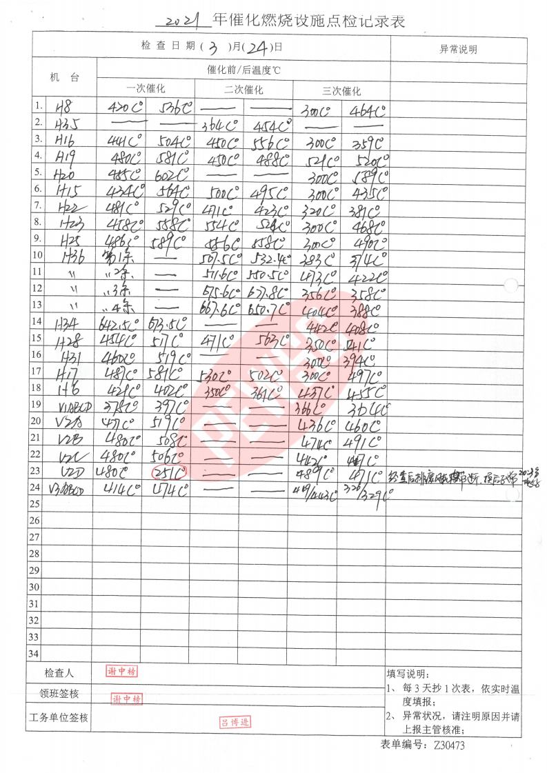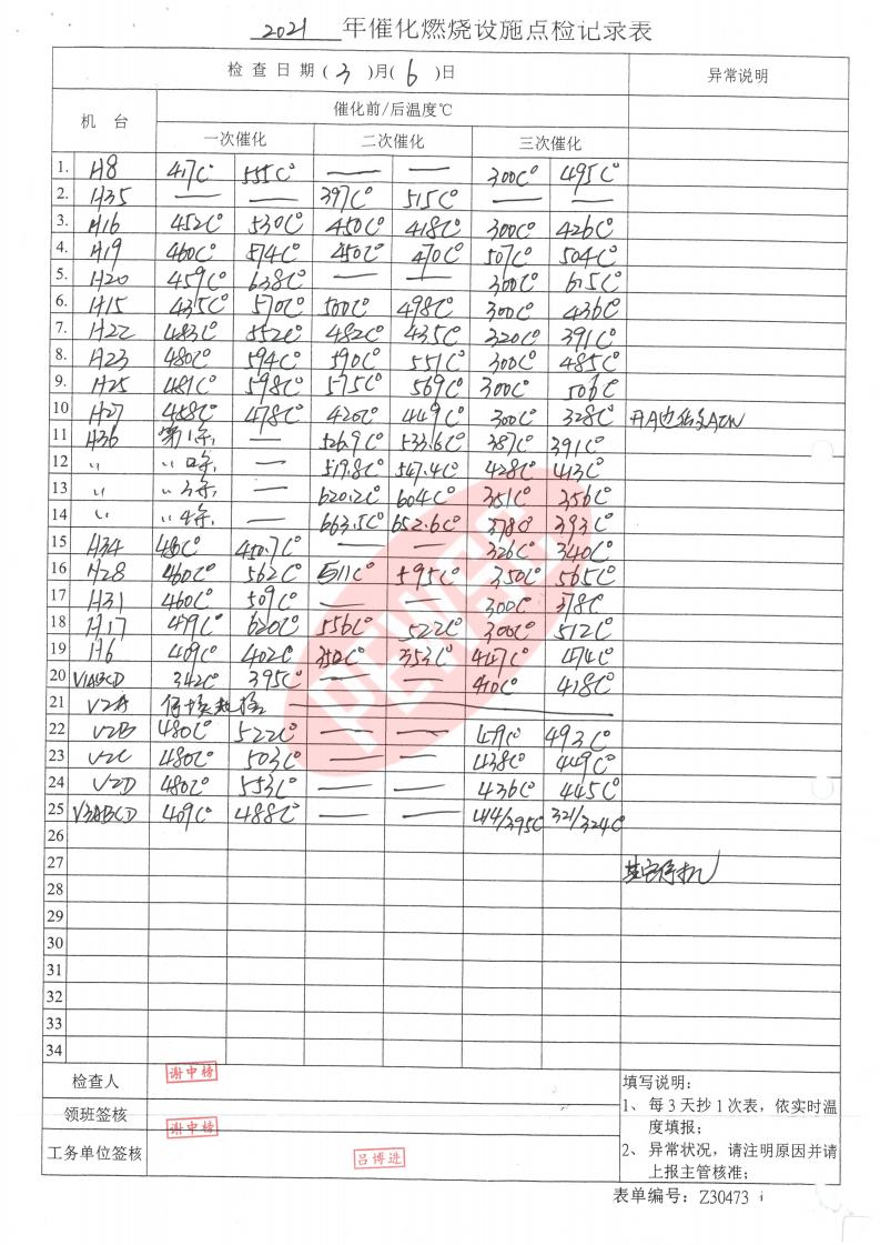 环境-运行台账-催化燃烧