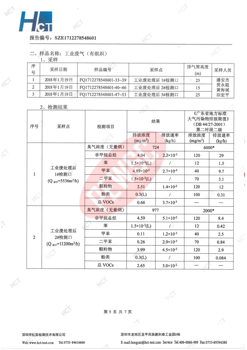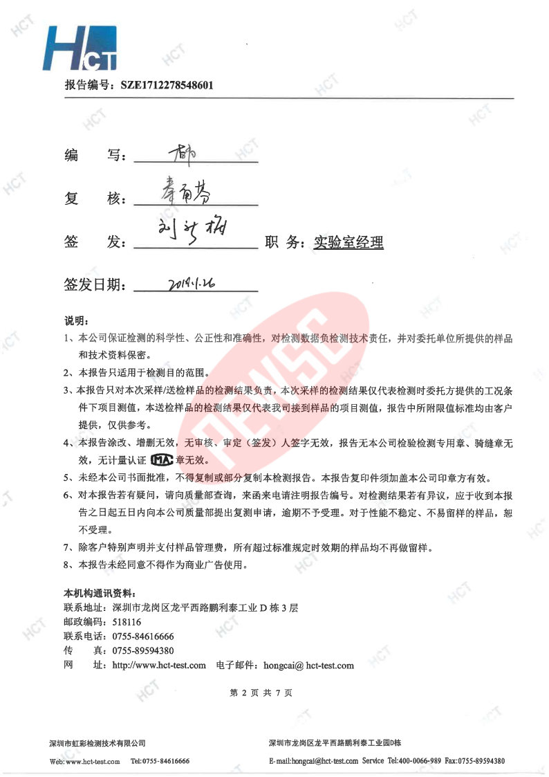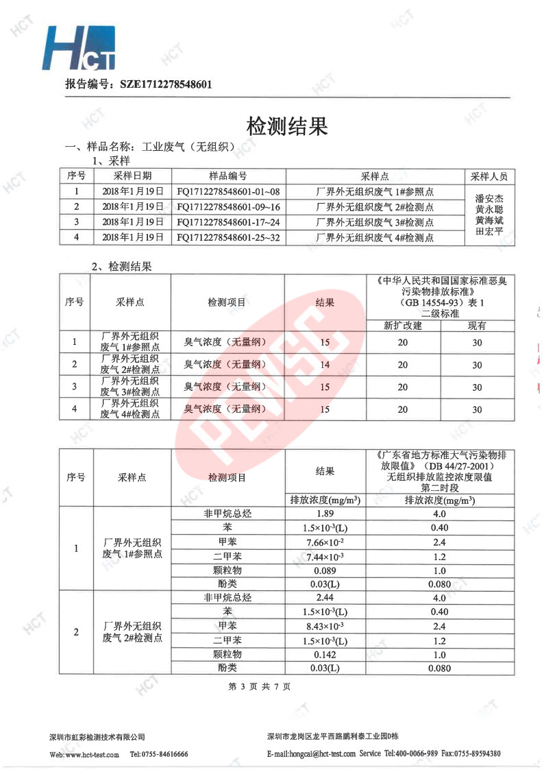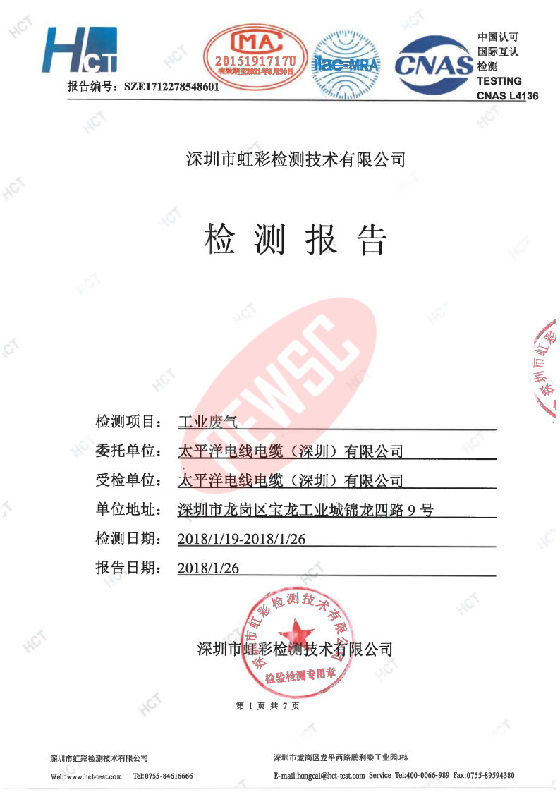 2018年第一季度检测报告 2018-01
