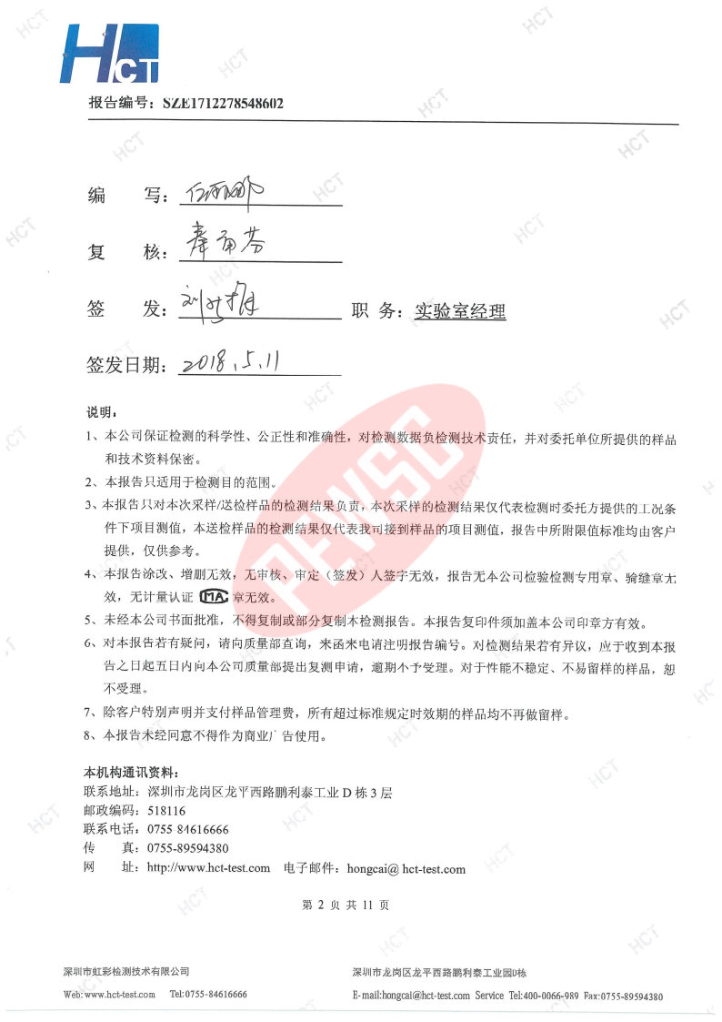 2018年第二季度检测报告 2018-05