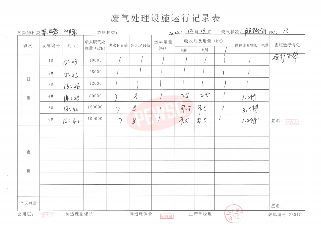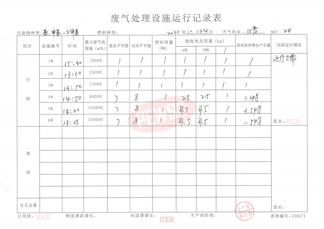 • 2022年12月份水喷淋运行台账
