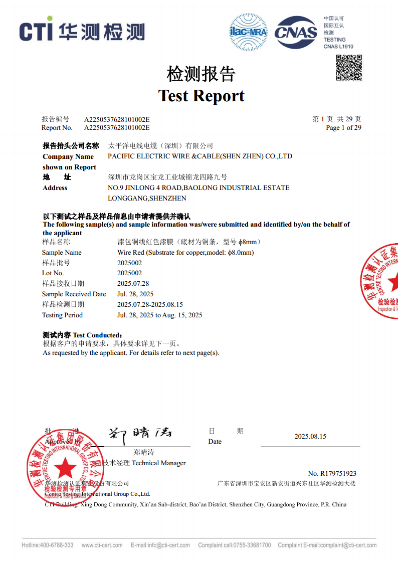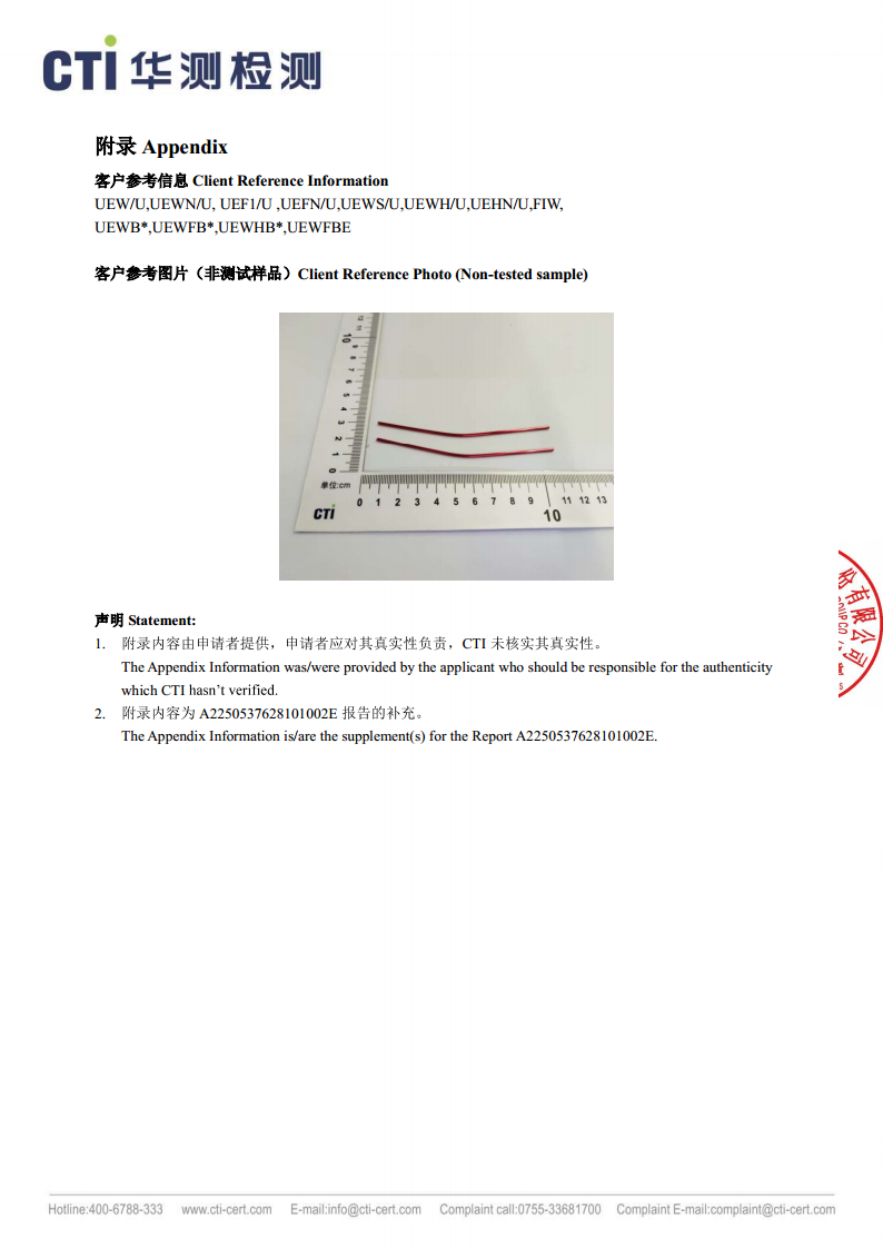 • UEW系列红色漆膜 ROHS TSCA POPS HF A2250537628101002E