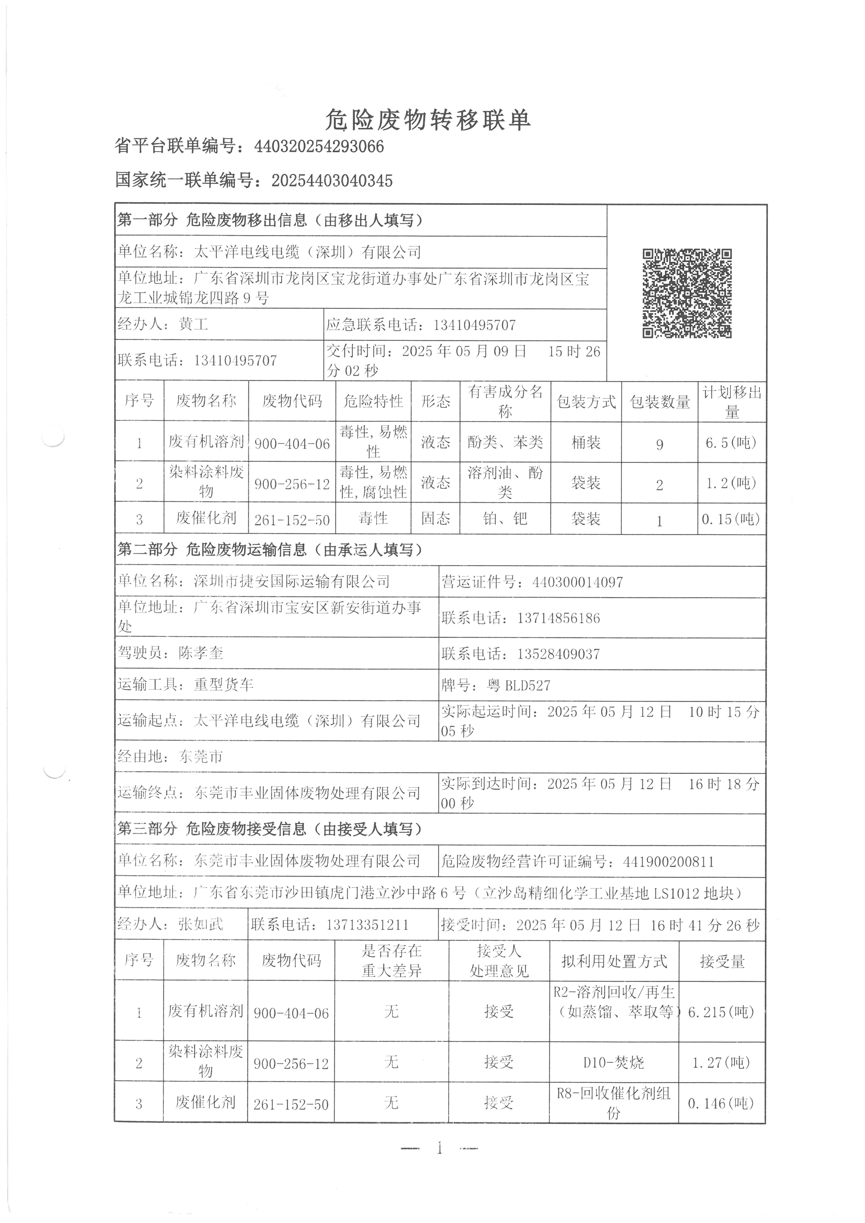 危险废物转移联单 2025-05