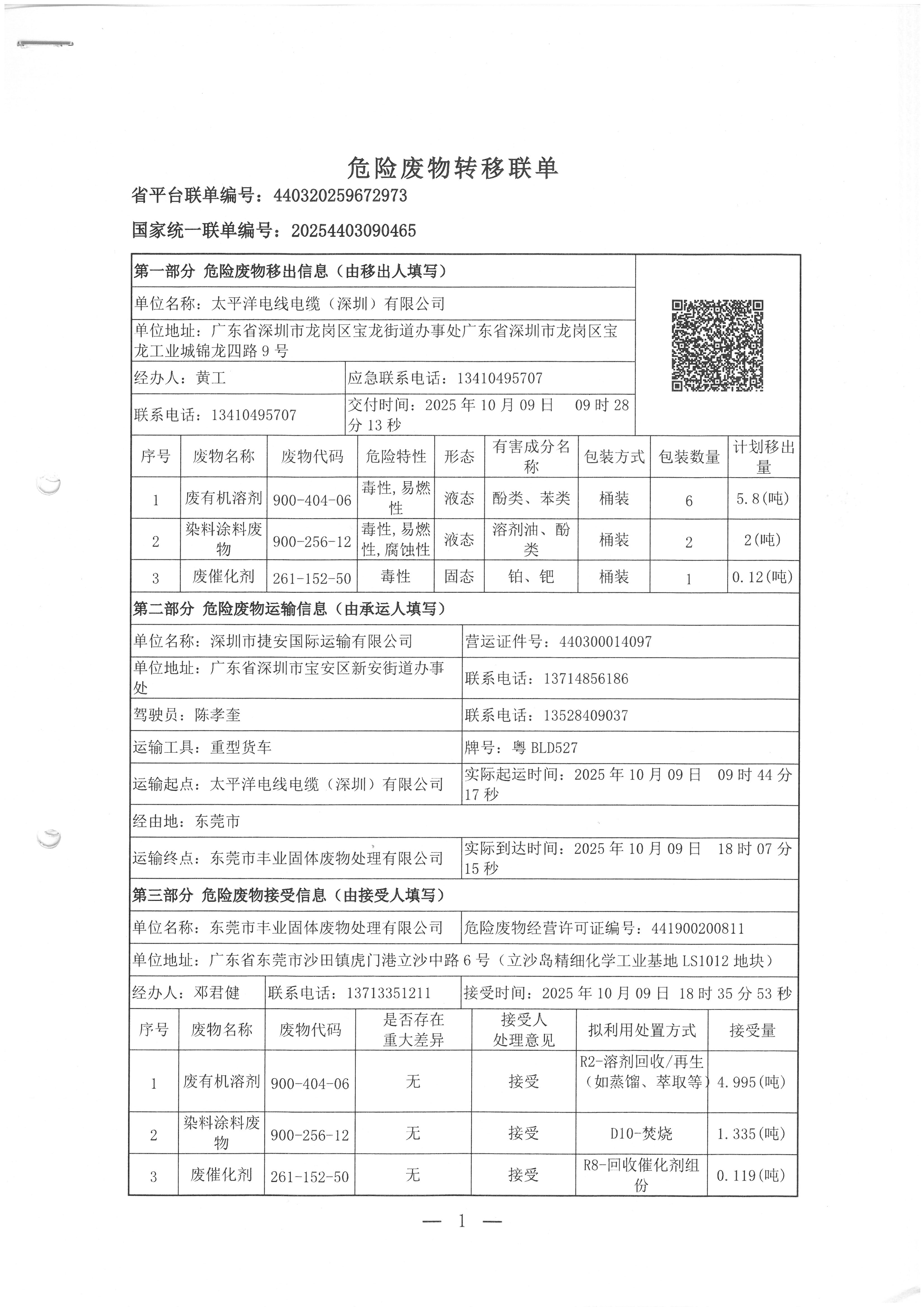 危险废物转移联单 2025-10