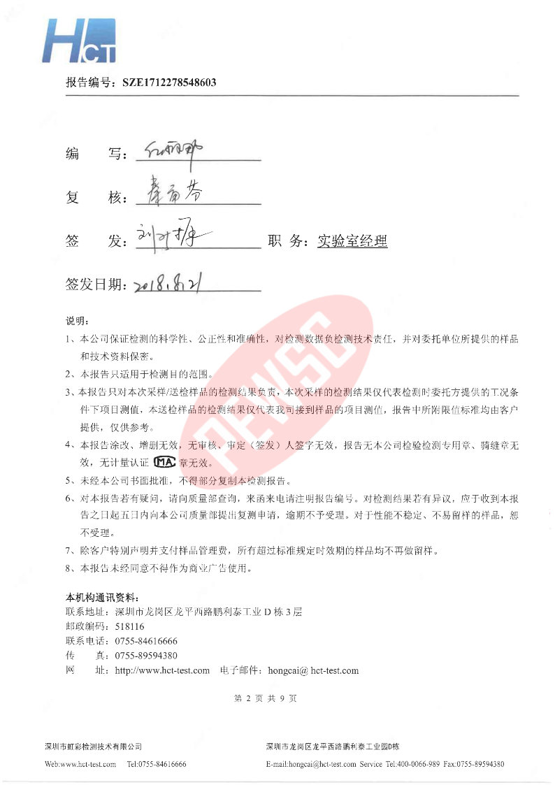 2018年第三季度检测报告 2018-08
